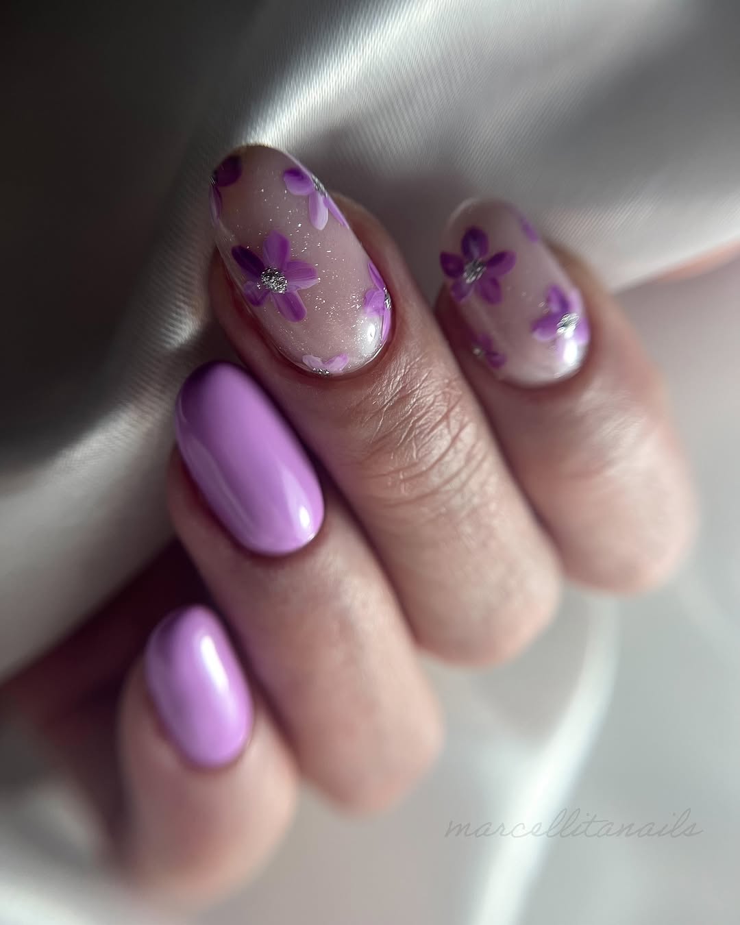 - Die Nägel erhalten ein einzigartiges glitzerndes Aussehen mit feinen rosa-lila irideszenten Partikeln.