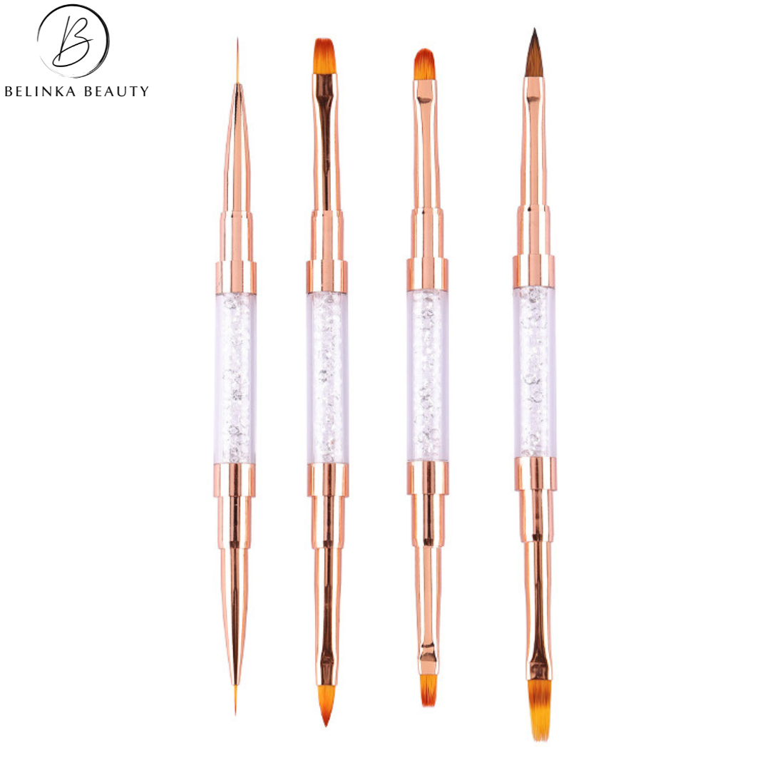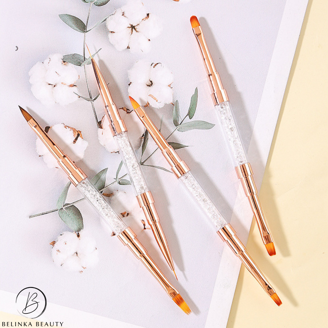 Set mit 4 doppelseitigen Pinseln für Nagelmodellage und Nailart.