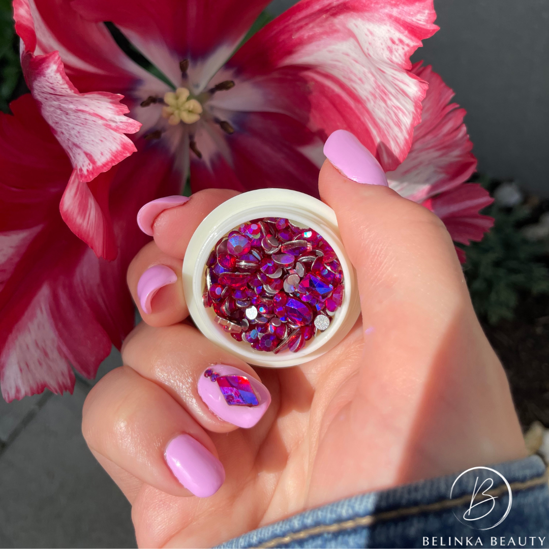 Create a unique nail design with our mix of crystals in a practical package with a transparent lid. This set includes rhinestones and nail decorations of different colors and shapes, which will allow you to complete your own style. The flat bottom side of the crystals makes them easy to place and fold into shapes and figures, while the top side boasts bright colors and a high shine. Ideal for professional and home manicure.