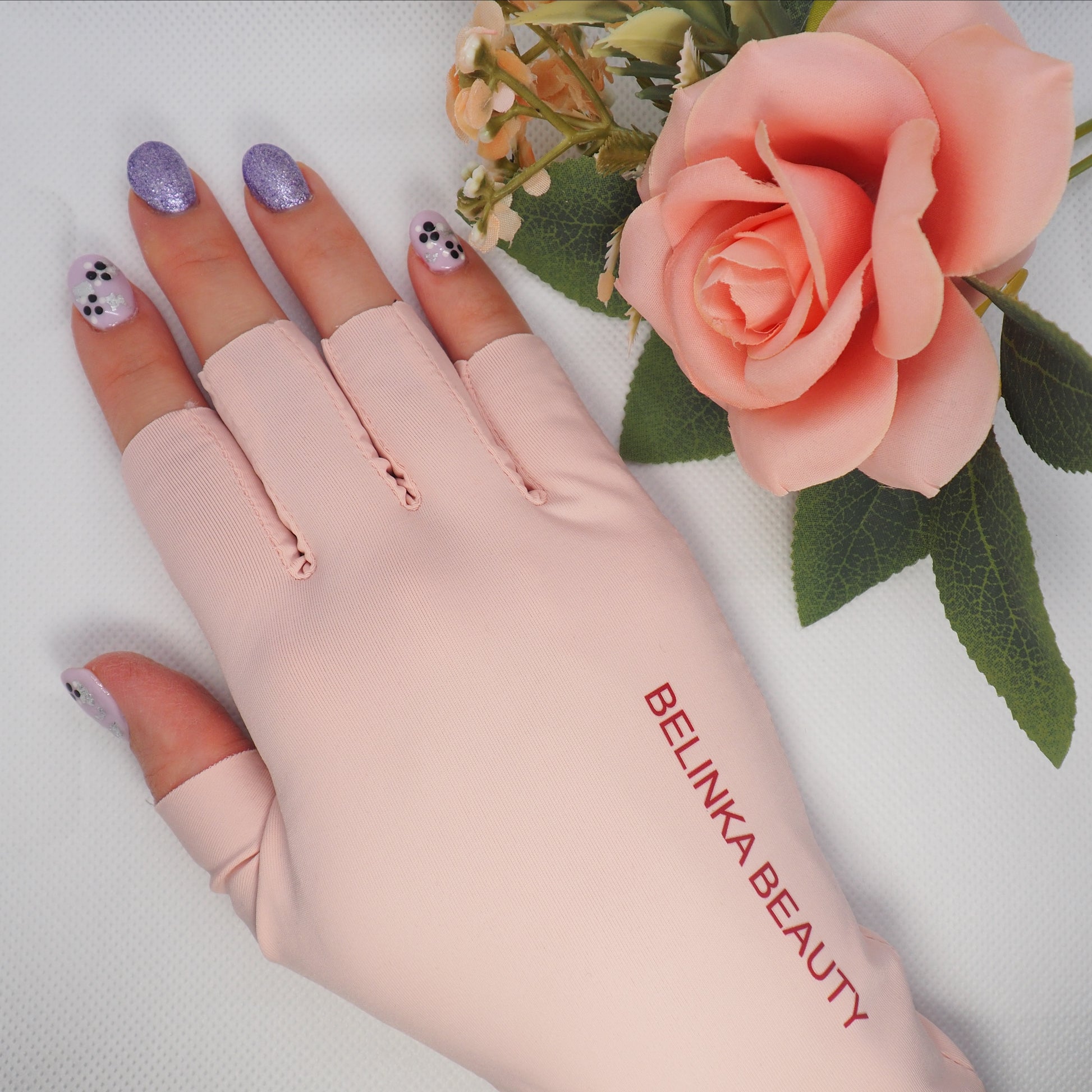 Ružové UV ochranné rukavice na manikúru s UPF 50+